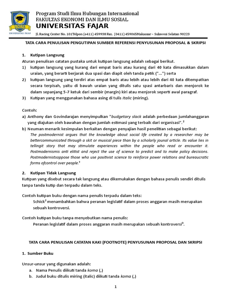 Cara Pengutipan Referensi Skripsi Dan Jurnal Footnote Bodynote